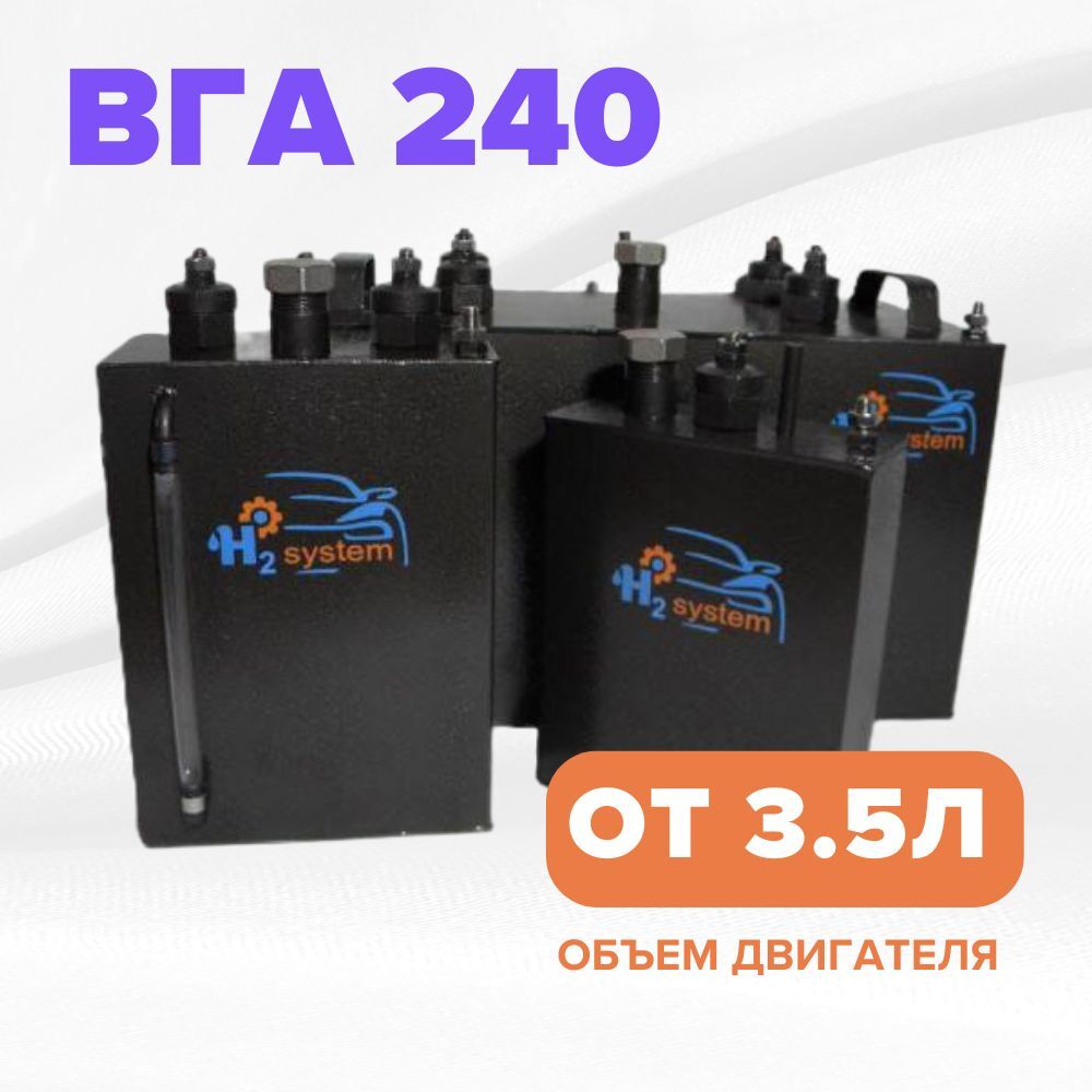 Применение в транспорте: Для двигателей от 4,0 л. до 12,0 л. Для грузовых автомобилей, (Карьерные, трассовые) автобусов, тракторов. поездов на углеродных топливных системах (дизель, бензин, газ). Порты и аэропорты – спецтехника (тягачи, погрузчики, аэродромных автобусы и грузовики). Железнодорожный транспорт – питание в гибридных локомотивах. Понижение затрат на газо-генераторных установках Комплектация: - Генератор водорода ВГА-240 - ШИМ (электронный блок) - Баблер (водяной затвор) - Датчик включения - Сода каустическая - Предохранитель - Вентиль соединительный - Провода для подключения - Трубопровод для подвода водорода - Кожухи для трубопровода